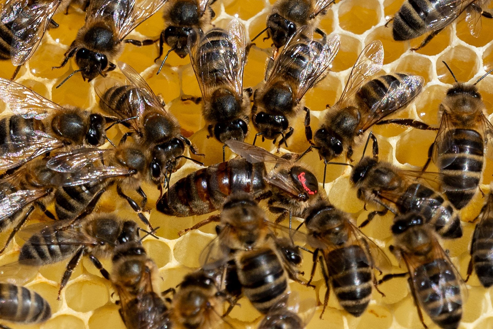 A striking image of our red-marked queen bee – a real beauty! ❤️