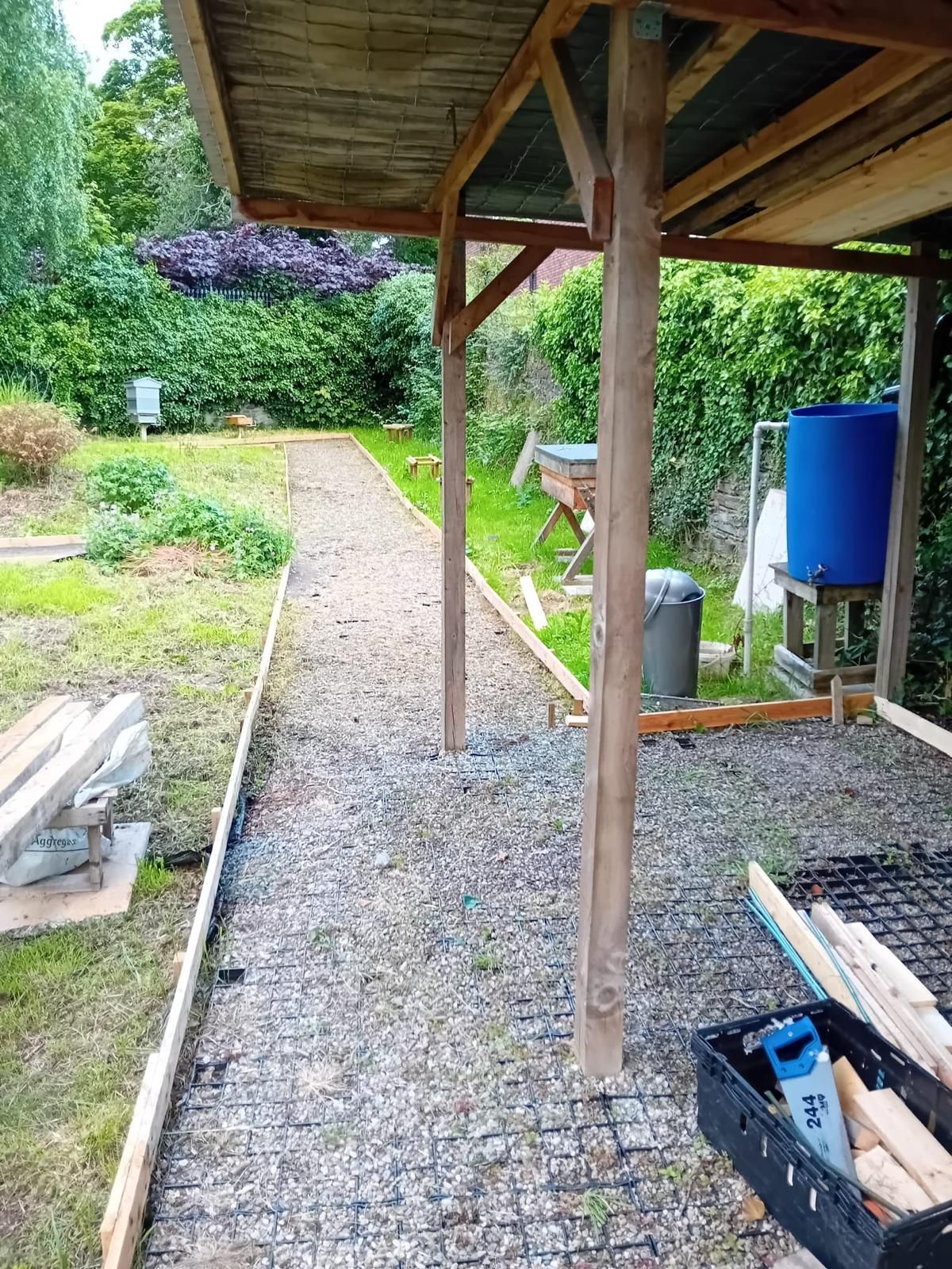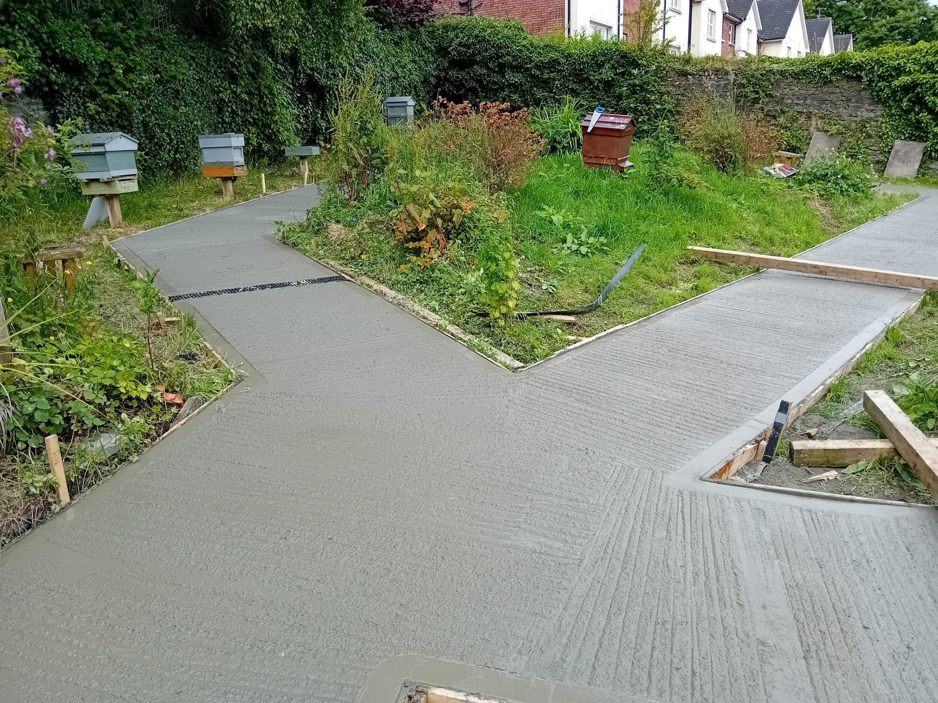 The initial path design in the apiary proved to be too high maintenance. We decided to refurbish and concrete over the apiary paths - hoping to create a lower maintenance apiary and a fresh look.